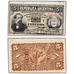 Available for sale is a Argentina 1884 5 Five Centavos Note P #5 - VF+