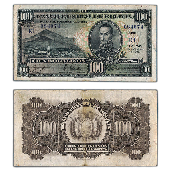Available for sale is a Bolivia 1928 100 Bolivianos Note P #133 - Circulated