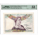 Available for sale is a French Guiana ND (1933-45) 25 Francs Note P #7 - PMG AU-53