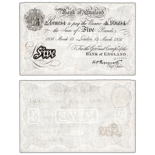 Available for sale is a Great Britain 1936 5 Five Pounds Note Operation Bernhard P #335ax - EF
