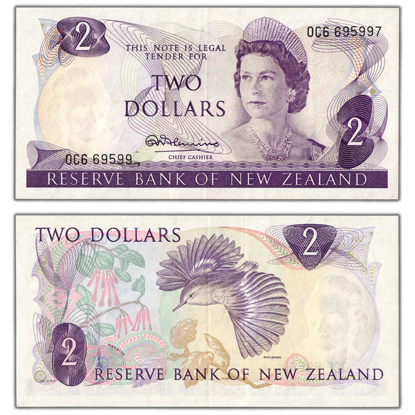Available for sale is a New Zealand ND (1967-81) $2 Two Dollars Note P #164a - AU