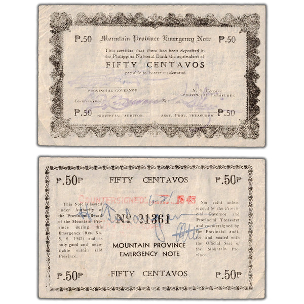 Available for sale is a Philippines Mountain Province Emergency 1942 50 Centavos Note