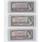 Available for sale is a $10 1954 Bank of Canada Notes Modified Portrait - Lot of 6