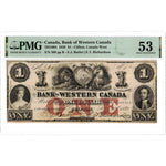 Available for sale is a $1 1859 Bank of Western Canada Chartered Note #795-10-04 - PMG AU-53