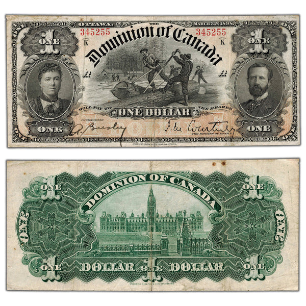 Available for sale is a $1 1898 Dominion of Canada Note Series K DC-13b - VF (tear)