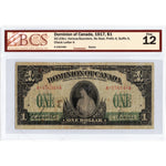 Available for sale is a $1 1917 Dominion of Canada Note No Seal Prefix A DC-23b-i - BCS F-12
