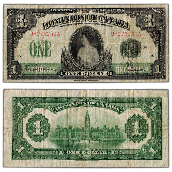 Available for sale is a $1 1917 Dominion of Canada Note Saunders Seal over ONE Series D DC-23c - Fine Country: Canada - The Dominion of Canada Year: 1917 Denomination:...