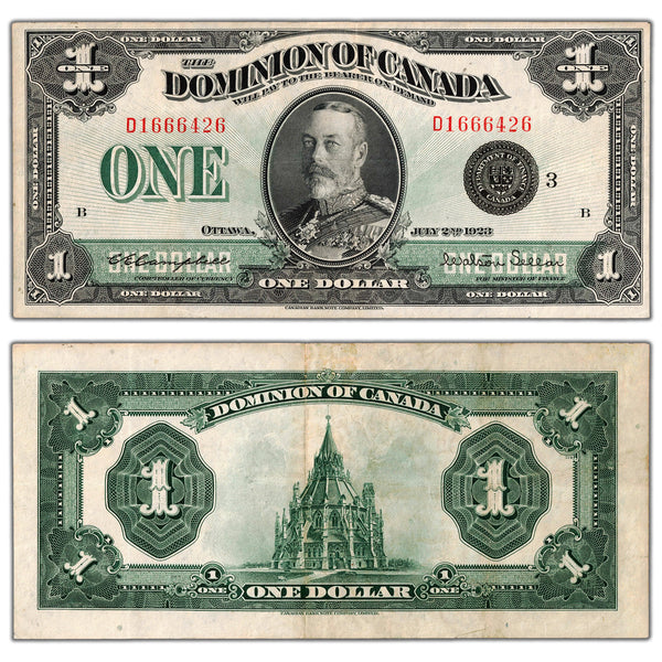 Available for sale is a $1 1923 Dominion of Canada Note Black Seal Series D DC-25n - VF/EF Country: Canada Year: 1923 Denomination: 1 Dollar Signatures: Campbell-Sellar Prefix/Series: D Variety:...