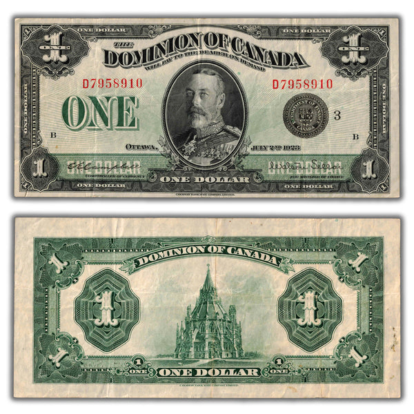 Available for sale is a $1 1923 Dominion of Canada Note Black Seal Series D DC-25n - VF