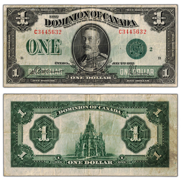 Available for sale is a $1 1923 Dominion of Canada Note Green Seal Series C DC-25j - VF