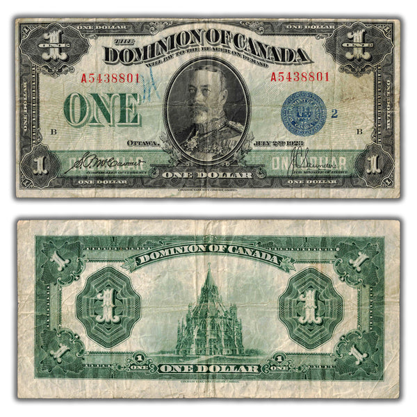 Available for sale is a $1 1923 Dominion of Canada Note Blue Seal Series A DC-25h - Light Crayon