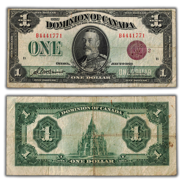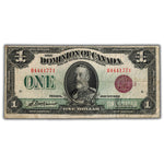 Available for sale is a $1 1923 Dominion of Canada Note Bronze Seal Series B DC-25i - F/VF