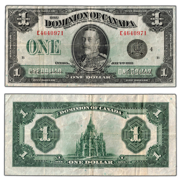Available for sale is a $1 1923 Dominion of Canada Note Black Seal Series E DC-25o - VF  SKU: E4640971