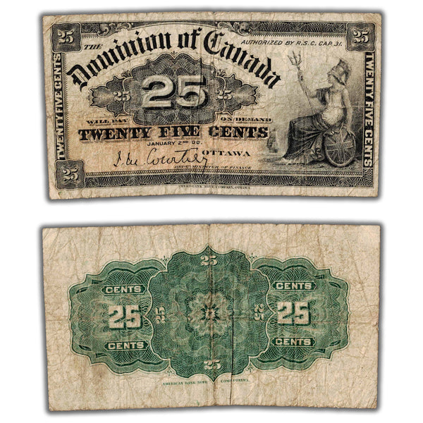 Available for sale is a 25 Cents 1900 Dominion of Canada Shinplaster Note Courtney DC-15a