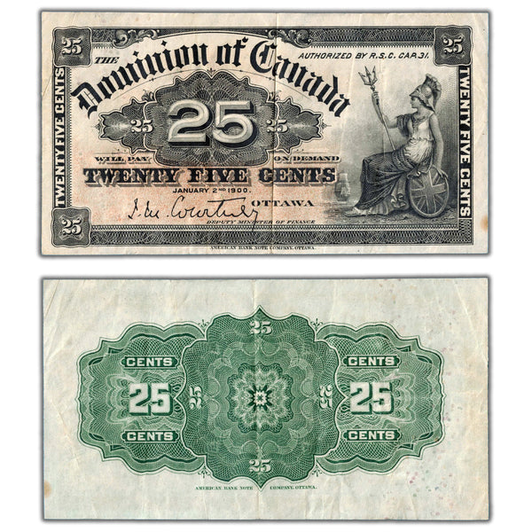 Available for sale is a 25 Cents 1900 Dominion of Canada Shinplaster Note Courtney DC-15a - VF