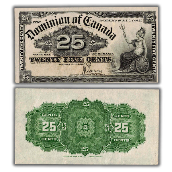 Available for sale is a 25 Cents 1900 Dominion of Canada Shinplaster Note Saunders DC-15c - Nice EF