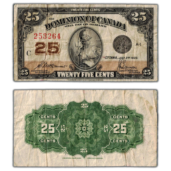 Available for sale is a 25 Cents 1923 Dominion of Canada Note Shinplaster DC-24c - Fine  SKU: 253264