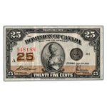 Available for sale is a 25 Cents 1923 Dominion of Canada Note Shinplaster DC-24c - VF+