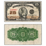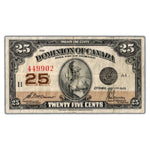Available for sale is a 25 Cents 1923 Dominion of Canada Note Shinplaster DC-24c - VF