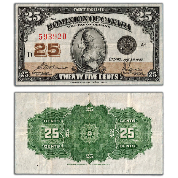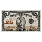 Available for sale is a 25 Cents 1923 Dominion of Canada Note Shinplaster DC-24c - VF SKU: 539920
