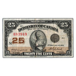 Available for sale is a 25 Cents 1923 Dominion of Canada Note Shinplaster DC-24d - VF