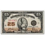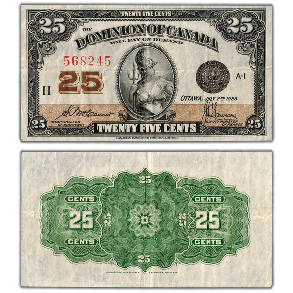 Available for sale is a 25 Cents 1923 Dominion of Canada Shinplaster Note DC-24c - VF