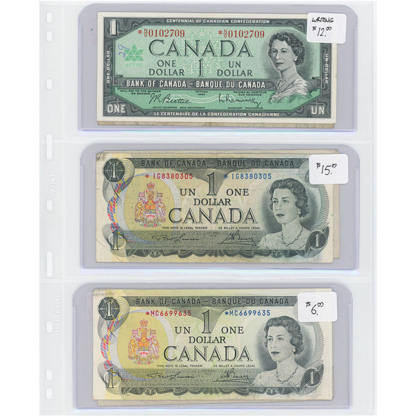 Available for sale is a $1 1967-73 Bank of Canada Notes Replacements - Lot of 6 - Retail $55