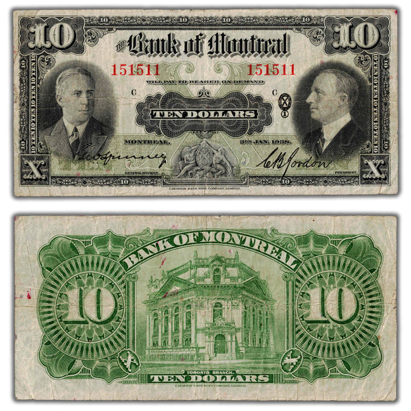 Available for sale is a $10 1938 Bank of Montreal Canada Chartered Note CH #505-62-04