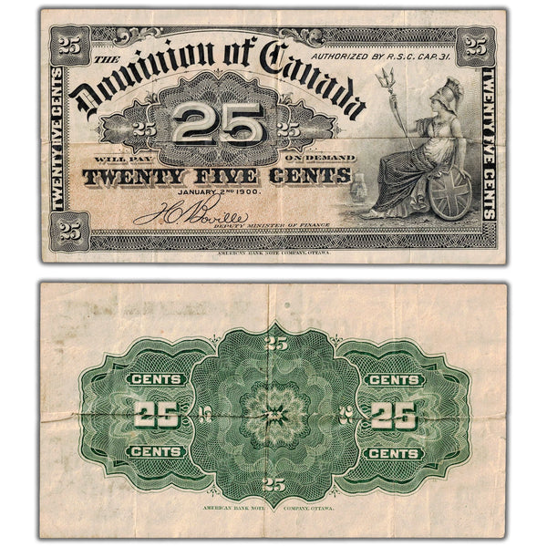 Available for sale is a 25 Cents 1900 Dominion of Canada Shinplaster Note DC-15b - VF