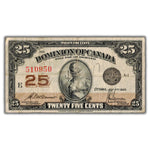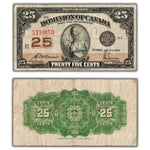 Available for sale is a 25 Cents 1923 Dominion of Canada Shinplaster Note DC-24c - Writing