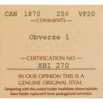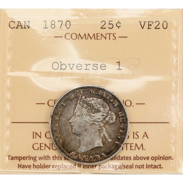 Available for sale is a Canada 1870 Obverse 1 25 Cents Quarter Silver Coin First Year of Issue! - ICCS VF-20