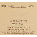 Available for sale is a Canada 1902 5 Cents Coin - ICCS MS-63