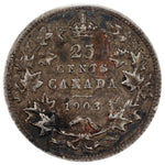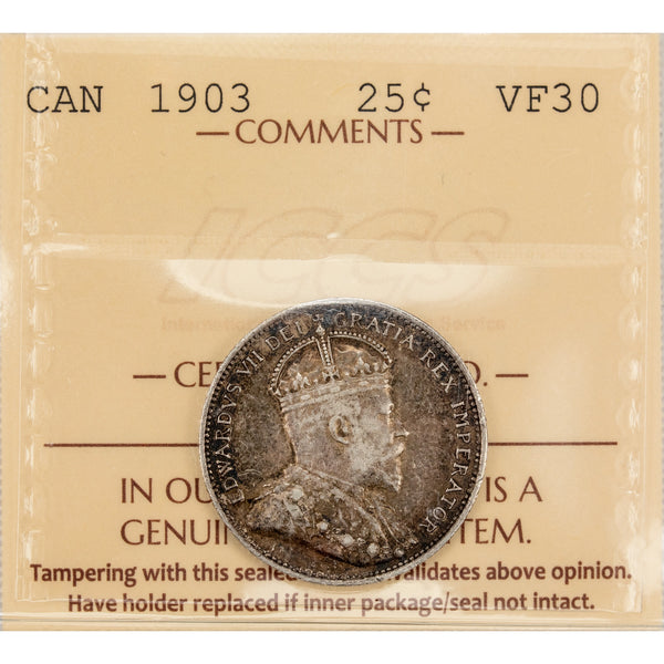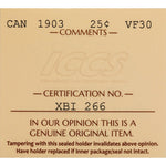 Available for sale is a Canada 1903 25 Cents Quarter Silver Coin - ICCS VF-30