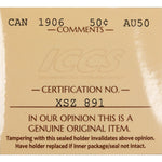 Available for sale is a Canada 1906 50 Cents Half Dollar Silver Coin - ICCS AU-50
