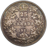 Available for sale is a Canada 1913 25 Cents Quarter Silver Coin - VF+
