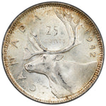 Available for sale is a Canada 1942 25 Cents Quarter Silver Coin - Uncirculated