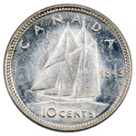 Available for sale is a Canada 1943 10 Cents Dime Silver Coin - AU-55 SKU: SP801
