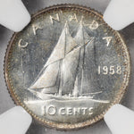Available for sale is a Canada 1958 10 Cents Dime Silver Coin - NGC PL-67