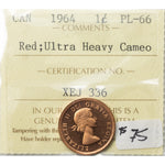 Available for sale is a Canada 1964 1 Small Cent Coin - ICCS PL-66 Red UHC