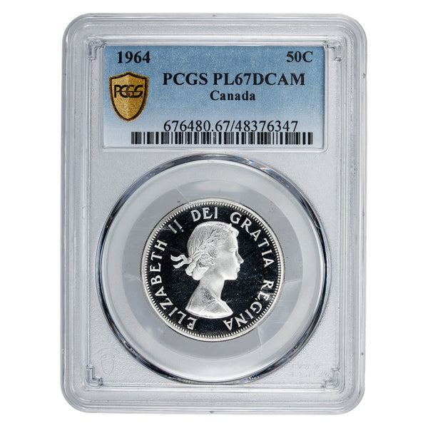 Available for sale is a Canada 1964 50 Cents Half Dollar Silver Coin - PCGS Proof-Like PL-67 DCAM SKU: 48376347