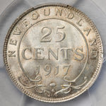 Available for sale is a Newfoundland 1917-C 25 Cents Silver Coin - PCGS MS-64