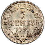 Available for sale is a Newfoundland 1929 5 Cents Silver Coin - Uncirculated