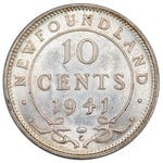Available for sale is a Newfoundland 1941 10 Cents Dime Silver Coin - AU-58