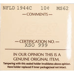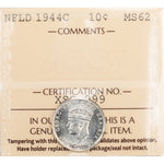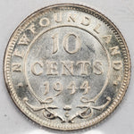 Available for sale is a Newfoundland 1944-c 10 Cents Silver Coin - ICCS MS-62