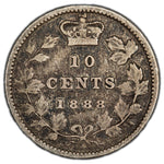 Available for sale is a Canada 1888 10 Cents Dime Silver Coin - VG