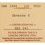 Available for sale is a Canada 1894 Obverse 6 10 Cents Dime Silver Coin - ICCS VF-20