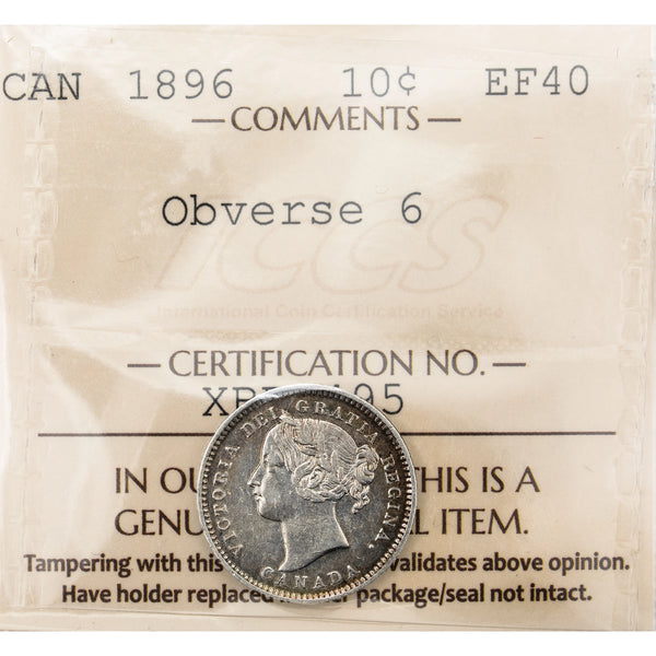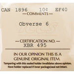 Available for sale is a Canada 1896 Obverse 6 10 Cents Dime Silver Coin - ICCS EF-40