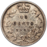 Available for sale is a Canada 1901 10 Cents Dime Silver Coin - Cleaned