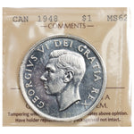 SOLD Canada 1948 $1 Silver Dollar Coin - ICCS MS-62