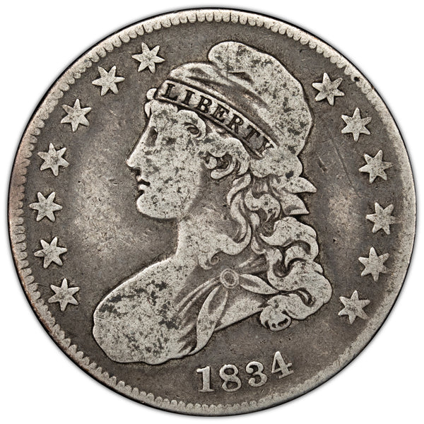 Available for sale is a United States 1834 50 Cents Capped Bust Half Dollar Silver Coin